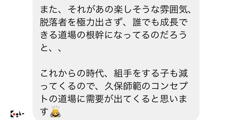 これからの時代、組手をする子も減ってくるので、久保師範のコンセプトの道場に需要が出てくると思います🙇”