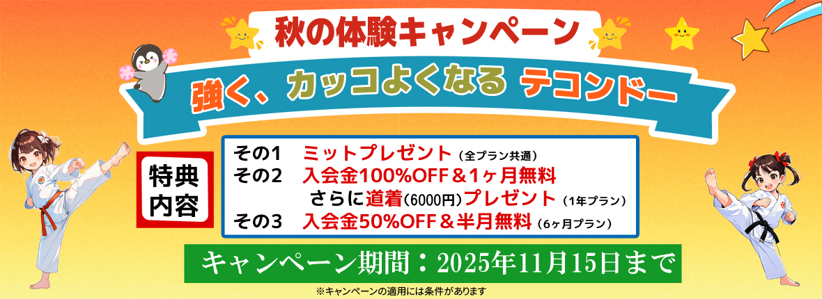 ☆【10月新クラス開講!秋の体験キャンペーン!強く、カッコよくなるテコンドー!】☆~11月15日迄