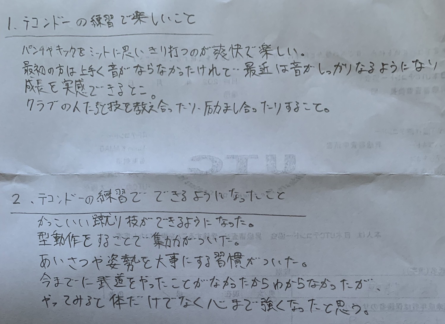 2.テコンドーの練習でできるようになったこと