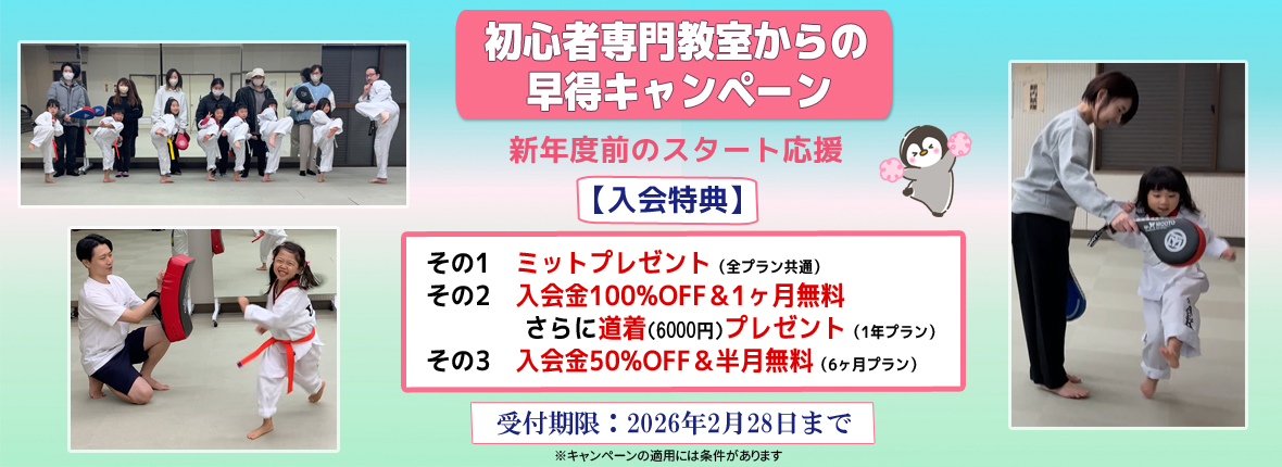 ☆🥋《初心者専門教室からの早得キャンペーン》新年度前のスタート応援/2月28日まで☆